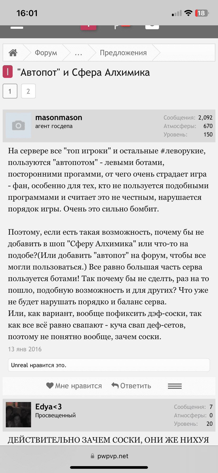 I Переоткрытие PWPvP Страница 2 из 9 < Назад 1 ← 2 3 4 5 6 → 9 Вперёд > opioid ищу пвп Сообщения: 266 Атмосферы: 277 Уровень: 109 аххахвпзаххвхазпхвхх opioid, 5 окт 2024 #21 opioid ищу пвп Сообщения: 266 Атмосферы: 277 Уровень: 109 Когда же он поймёт, что у него хуево получается манипулировать opioid, 5 окт 2024 #22 opioid ищу пвп Сообщения: 266 Атмосферы: 277 Уровень: 109 смысл от вайпа если говно останется говном зачем донатить в новое говно если оно все ещё говно, даже такой же формы и консистенции opioid, 5 окт 2024 #23 Meridika У меня лапки Сообщения: 178 Атмосферы: 70 Уровень: 57 Честно говоря, очень надеюсь, что ты изменишь свое решение. Не создается впечатления, что кто-то, кроме Тона, захочет сидеть здесь и месяцами что-то фармить. Нет ни желания, ни времени, ни какого-то чувства ностальгии, чтобы хотелось вернуться в прошлое. Наше ядро настолько устарело, что я не понимаю, куда еще можно откатиться. Ощущение такое, будто у всех в классе новейшие iPhone, а мне досталась кнопочная Nokia от бати, потому что он считает её самым надежным телефоном, так как проработал 10 лет! 5 окт 2024 в 14:03 Последнее редактирование: 5 окт 2024 Meridika, 5 окт 2024 #24 Andriy нравится это. 1 Тон Признанный сервером Сообщения: 929 Атмосферы: 84 Уровень: 112 Вы своем нытьем ничем не добьетесь, проект не ваш, если не нравиться вас никто не держит. Тон, 5 окт 2024 #25 Eltasar Признанный сервером Сообщения: 311 Атмосферы: 132 Уровень: 105 Тон, Иди босиков зафарми, ебаный плод деменции и мусорного бачка Eltasar, 5 окт 2024 #26 Тон Признанный сервером Сообщения: 929 Атмосферы: 84 Уровень: 112 Eltasar, Бабуин, слюни свои подбери как же тебя трясет! Стыдаба. Тон, 5 окт 2024 #27 Eltasar Признанный сервером Сообщения: 311 Атмосферы: 132 Уровень: 105 Ну точно лучшая концепция, этого нам как раз не хватало Даже в 16 году люди че то новое ждали. Наступил без 5ти минут 2025й год. Люди так и не дождались ниче нового, зато дождались отката туда же, где просили че то новое, чтобы делать это снова. Чем дальше копаешь форум, все веселее и веселее IMG_2781.png Размер файла: 111 КБ Просмотров: 133 5 окт 2024 в 15:32 Последнее редактирование: 5 окт 2024 Eltasar, 5 окт 2024 #28 [Ð3m0n] и Meridika нравится это. 2 Meridika У меня лапки Сообщения: 178 Атмосферы: 70 Уровень: 57 Eltasar,аха 2016 год, а люди уже просят что-то новое))) Meridika, 5 окт 2024 #29 Eltasar Признанный сервером Сообщения: 311 Атмосферы: 132 Уровень: 105 17й год. Люди уже рот ебали качаться и 10 регрейдов и удаляли сервер. Возвращаемся обратно IMG_2782.png Размер файла: 100 КБ Просмотров: 126 Eltasar, 5 окт 2024 #30 Meridika нравится это. 1 Eltasar Признанный сервером Сообщения: 311 Атмосферы: 132 Уровень: 105 ВЗАЗАХВХХАЗАЗЭ, блять боже. 9 ЛЕТ, ДЕВЯТЬ ЛЕТ, ты не можешь это сделать IMG_2783.png Размер файла: 82 КБ Просмотров: 131 Eltasar, 5 окт 2024 #31 Tunsedy нравится это. 1 Eltasar Признанный сервером Сообщения: 311 Атмосферы: 132 Уровень: 105 ГДЕ СФЕРА АЛХИМИКА СЕРГЕЙ? Eltasar, 5 окт 2024 #32 Eltasar Признанный сервером Сообщения: 311 Атмосферы: 132 Уровень: 105 ДОНАТЫ ОН БЛЯТЬ ЖДЕТ Eltasar, 5 окт 2024 #33 Eltasar Признанный сервером Сообщения: 311 Атмосферы: 132 Уровень: 105 9 ЛЕТ ЛЮДИ ЖДУТ КАКУЮ ТО МЕЛОЧЬ Eltasar, 5 окт 2024 #34 Лали Поп Любимчик сервера Сообщения: 1435 Атмосферы: 494 Уровень: 150 opioid, создавай приста Лали Поп, 5 окт 2024 #35 Лали Поп Любимчик сервера Сообщения: 1435 Атмосферы: 494 Уровень: 150 Eltasar, и все темы от масона, стоит задуматься, чел сюда две однушки в центре москвы вдонил Лали Поп, 5 окт 2024 #36 Eltasar Признанный сервером Сообщения: 311 Атмосферы: 132 Уровень: 105 Лали Поп, Ну на 2016 год, можно было пожертвовать частью этой однушки и пересадить сервер 